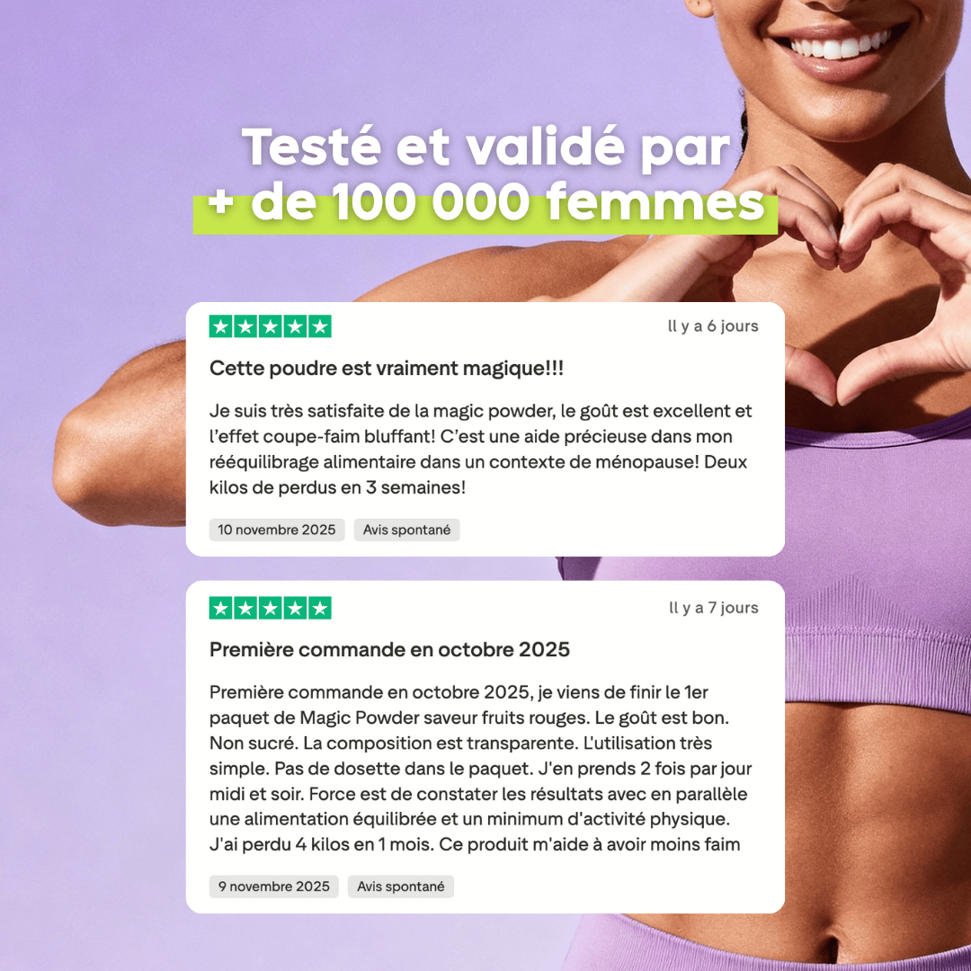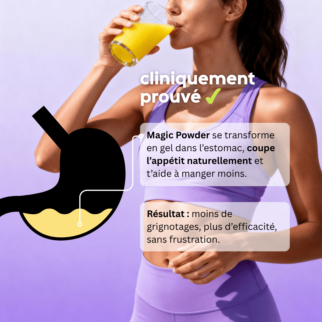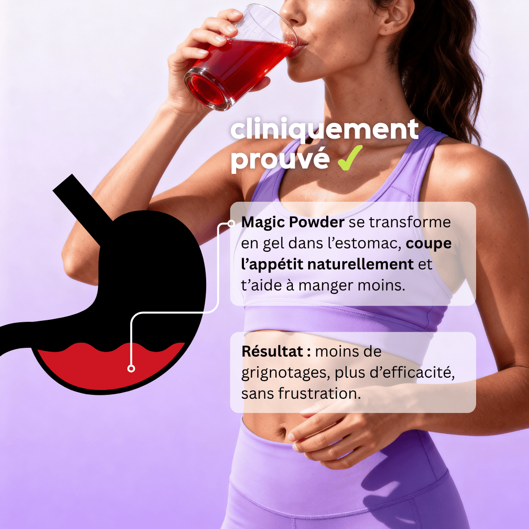Vous en avez assez de céder aux fringales et de saboter vos efforts minceur ? Grâce à l’effet coupe-faim naturel du MAGIC POWDER, vous prenez enfin le contrôle sur vos portions et vos grignotages. Fini la frustration : faites rimer plaisir et équilibre pour atteindre vos objectifs plus vite que vous ne l’imaginiez. Prenez les rênes de votre appétit et savourez le changement !